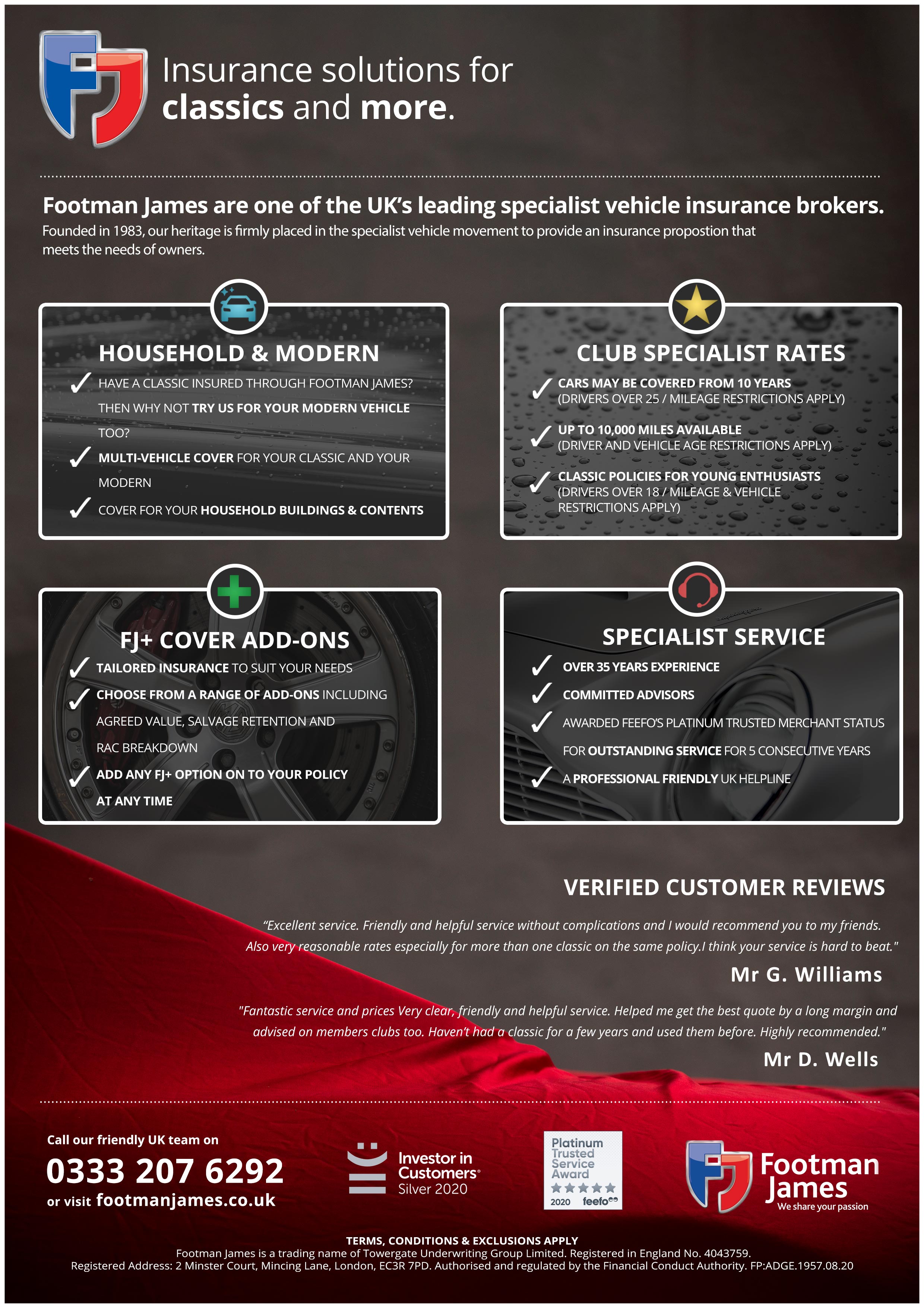 - A full-page advertorial for Footman James as featured in the prestigious London Concours 2020 handbook.