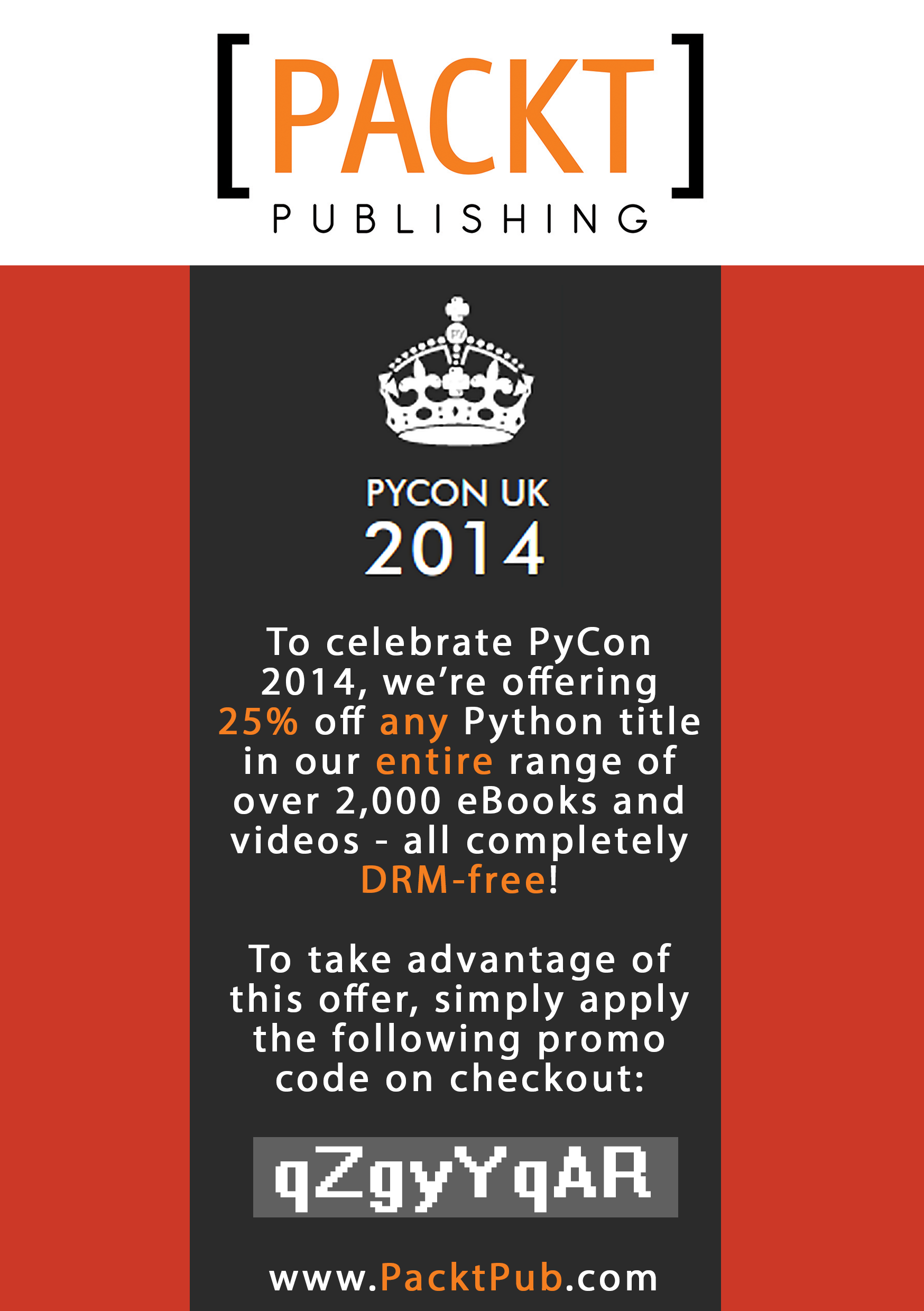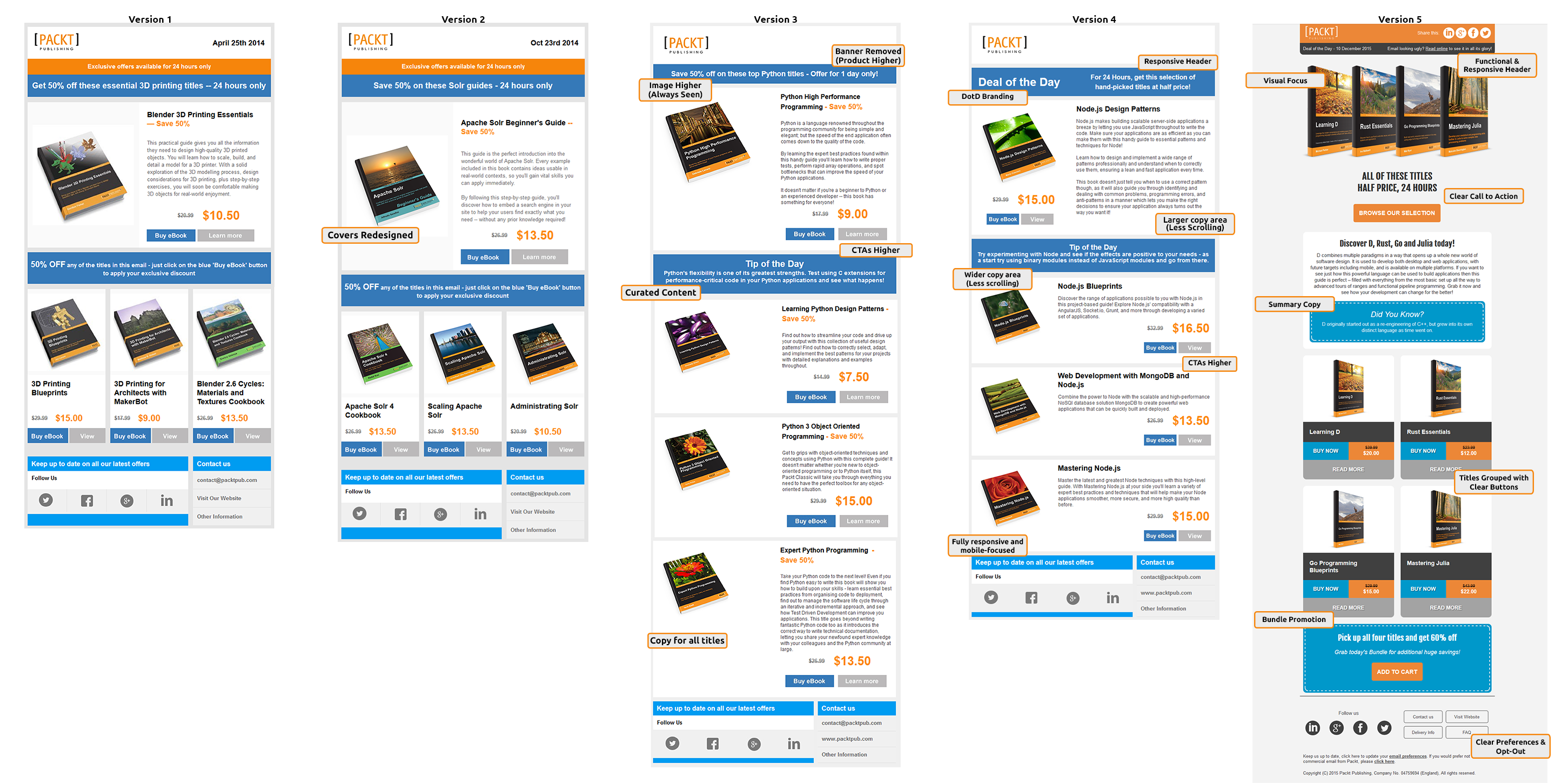 - An email designed and built for Packt Publishing. The email featured unique design elements on a daily basis, including a themed header, background, ‘tip of the day’ and summary of products on offer.