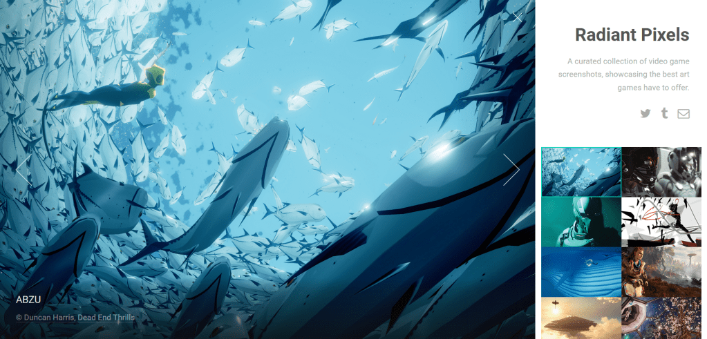 A fully responsive website built to showcase the under-appreciated art of video game screenshots. It was designed to draw attention to the artists producing some amazing works and highlight the games they utilize.